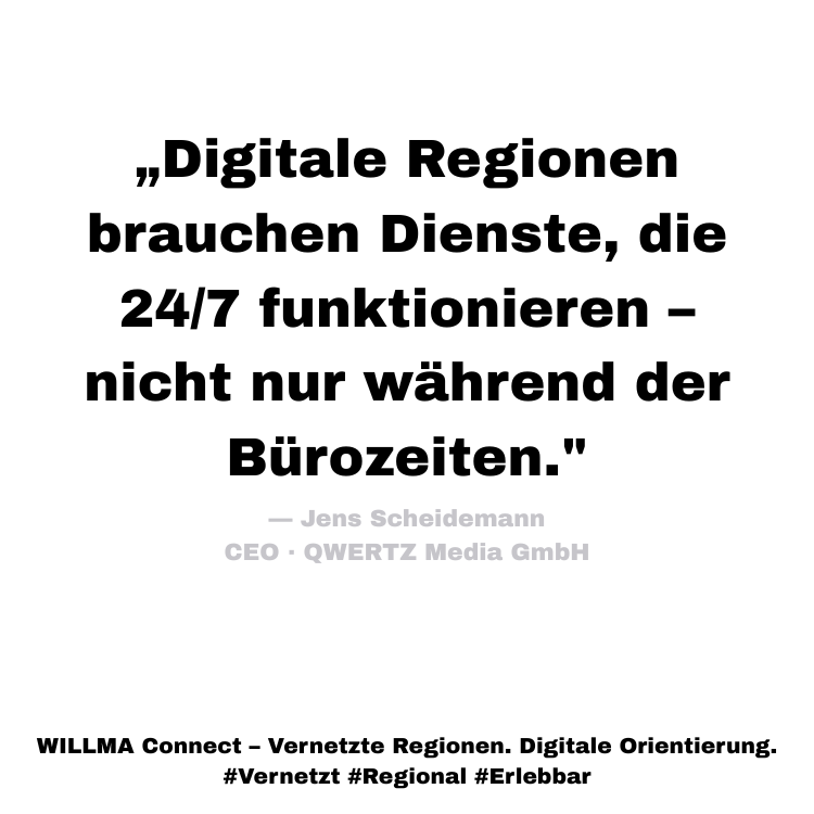 WILLMA Connect bildet die Basis und wächst durch modulare Add-ons zu einem intelligenten Empfehlungssystem, das Inhalte wie FAQ, Orte, Veranstaltungen, Partnerangebote und regionale Daten verknüpft und kontextbezogen ausspielt.